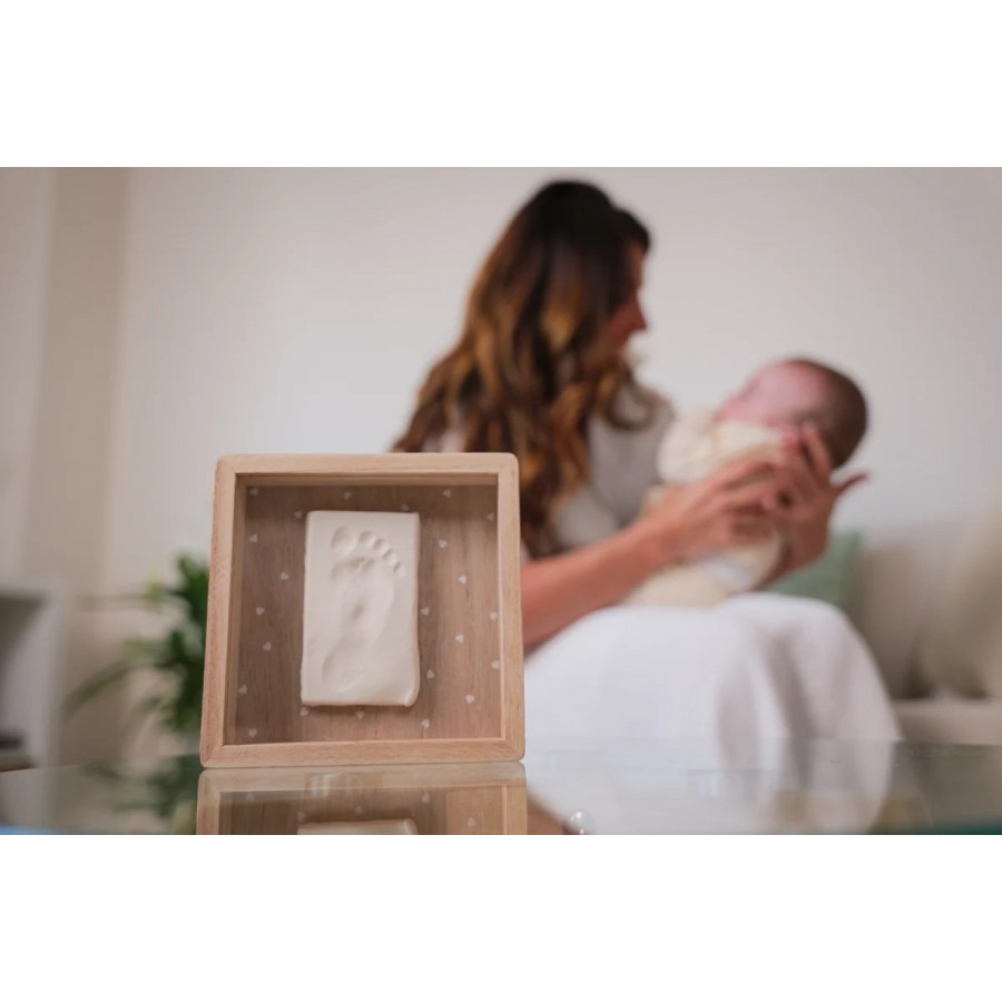 Περιλαμβάνει : ξύλινο πλαίσιο με προστατευτικό κάλυμμα για να μην σκονίζεται, κιτ από πηλό, ρολό και οδηγίες για την εύκολη δημιουργία του αποτυπώματος.